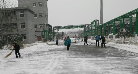 2015年11月24日華北華東地區(qū)下了入冬以來第一場大雪。為了不影響公司的正常生產(chǎn),德州虹橋染料化工有限公司全廠在崗職工在下午下班前趁著雪小了,拿出工具把各衛(wèi)生區(qū)道路上的雪清掃了一遍。公司總工會(huì)希望玫瑰精,苯胺黑,元青,間硝基苯磺酸鈉等車間及其它部門的坐不上班車的職工在上下班途中注意雪天路滑,謹(jǐn)慎慢行,安全到達(dá)。