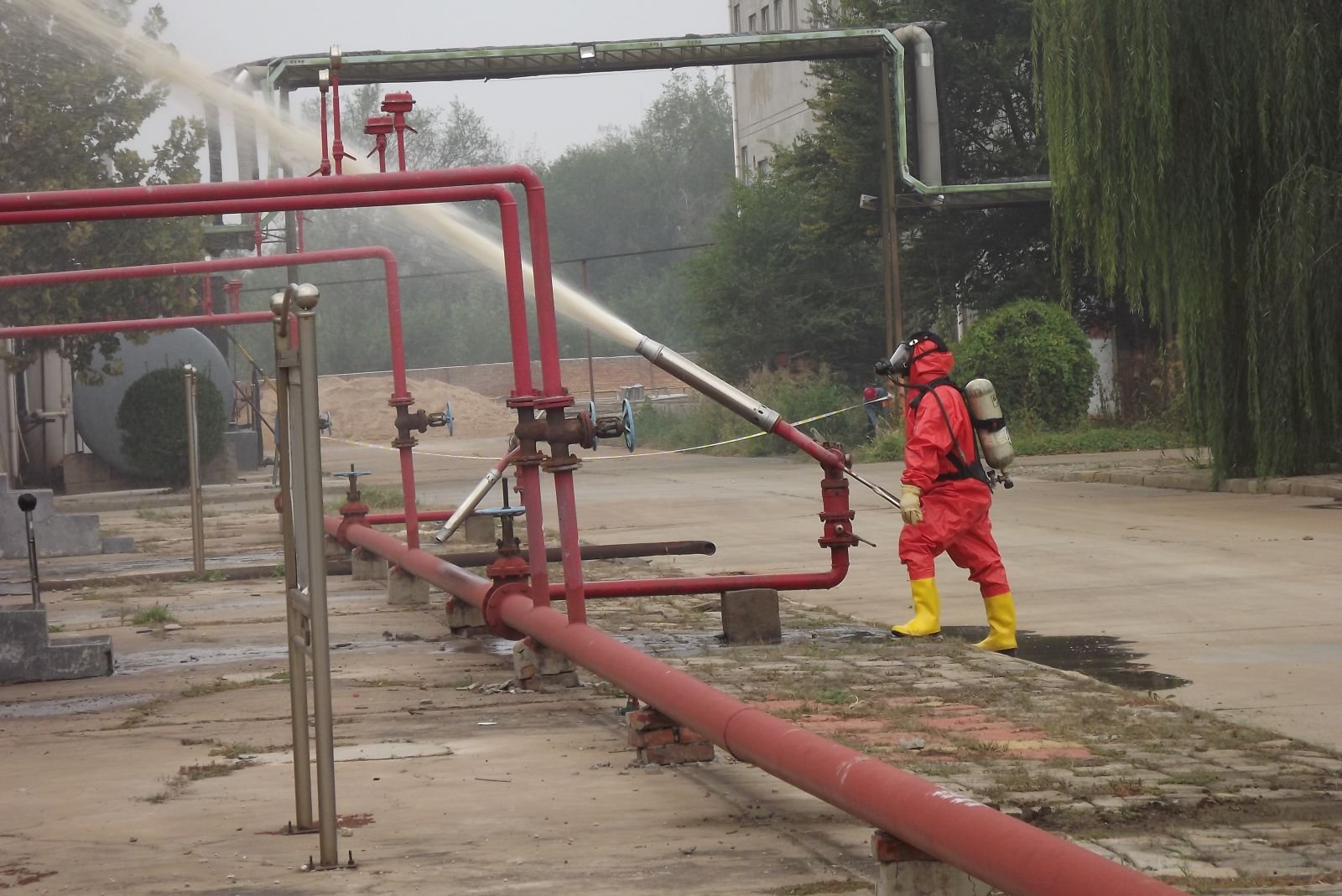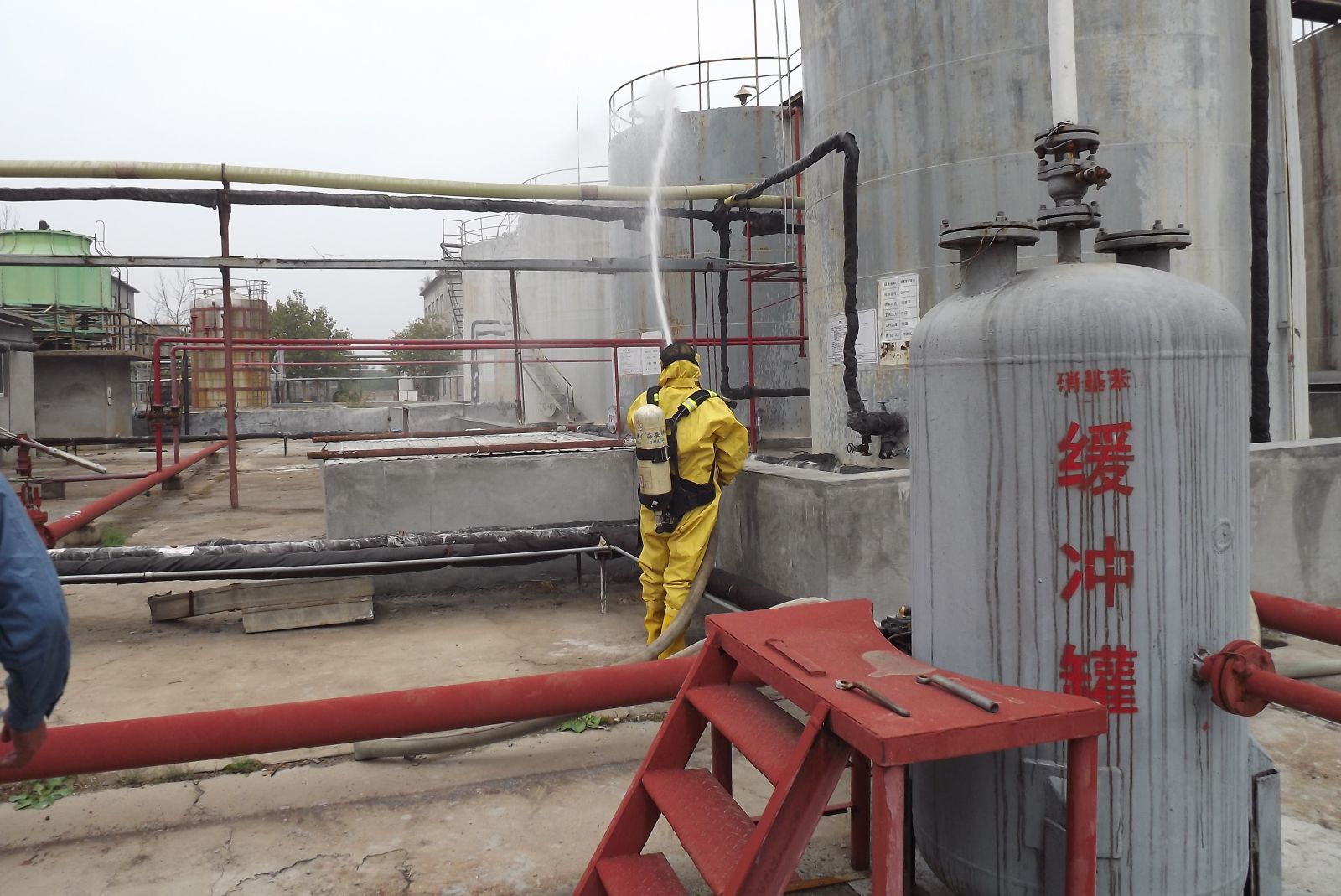 德州虹橋染料化工有限公司生產(chǎn)部為增強(qiáng)公司各部門生產(chǎn)防范意識(shí)和提高應(yīng)急處置能力,強(qiáng)化應(yīng)對(duì)各類突發(fā)事故的處理技能,提高職工快速反應(yīng)能力以及各部門協(xié)同作戰(zhàn)能力,確保在發(fā)生突發(fā)事故時(shí),能夠有效組織,快速反應(yīng),臨危不亂,最大限度地減少危害事故的發(fā)生。2019年10月11日上午組織公司各部門員工在硝基苯儲(chǔ)罐區(qū)進(jìn)行了應(yīng)急消防演練。
