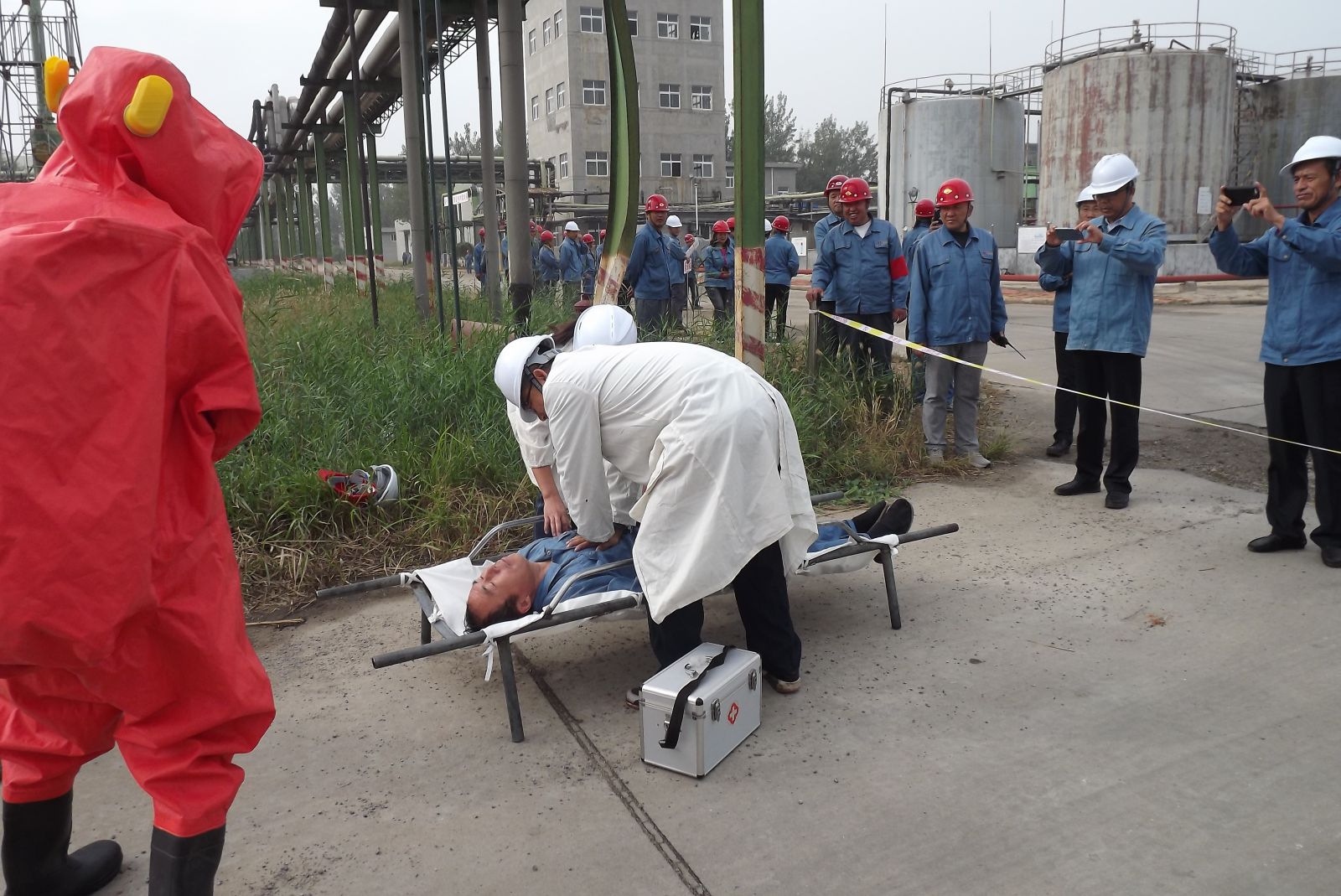 此次演練活動(dòng)準(zhǔn)備充分、組織得力,從巡檢員工發(fā)現(xiàn)問題及時(shí)匯報(bào)、事故搶險(xiǎn)從上到下的積極配合,搶修員工對(duì)管道泄露的穩(wěn)妥處置和對(duì)儲(chǔ)罐消防應(yīng)急的處理過程、醫(yī)護(hù)搶救人員對(duì)受傷人員的得當(dāng)處理,檢驗(yàn)人員對(duì)泄露物的取樣保存等,在演練過程中各個(gè)環(huán)節(jié)的員工身臨其境,從而達(dá)到了提高全體員工在緊急情況下對(duì)事故應(yīng)急處理的能力及增強(qiáng)安全意識(shí)的目的。